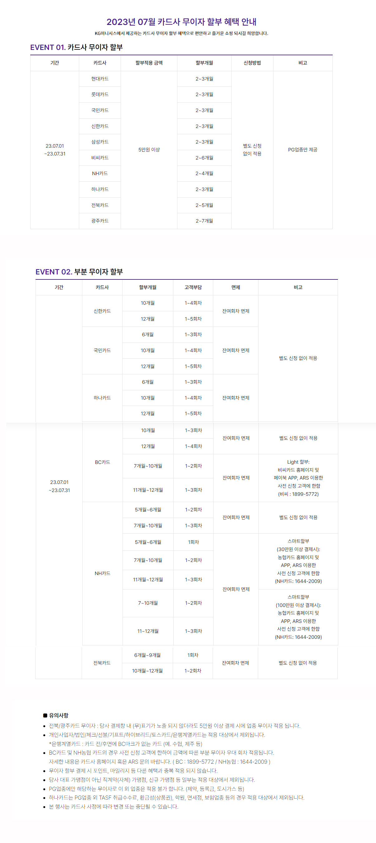 2023년 07월 카드사 무이자 할부 혜택 안내
