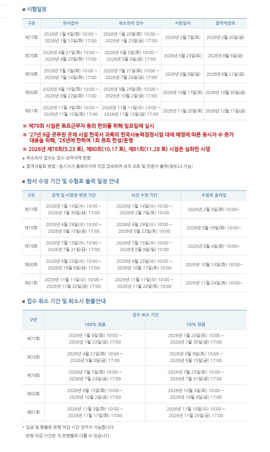 2026년도 한국사능력검정시험 시행 일정